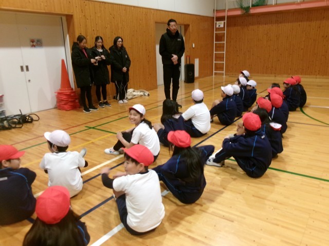 今回は、津田先生とともにインドネシアより3名の方が視察に来られ、日本の小学校の体育授業を初めて見学されました。