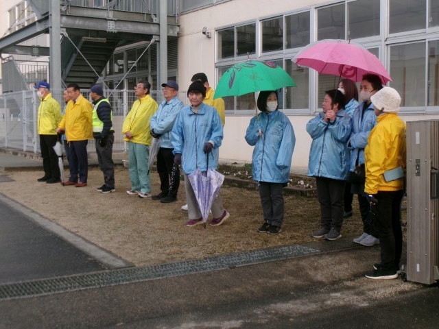 3月4日、小雨の降る中、地域の皆さまがあいさつ運動にお越しくださいました。