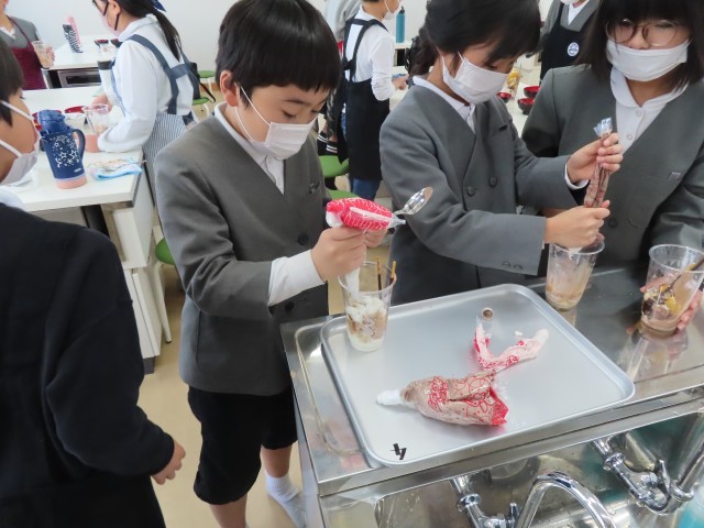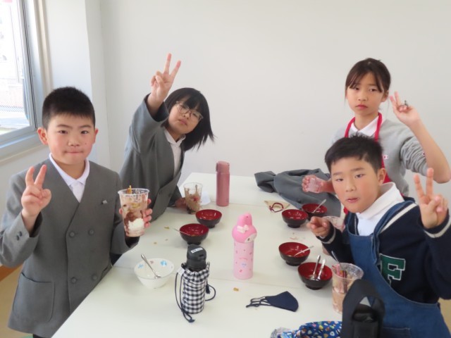 3月5日、4年生がお楽しみ会としてパフェ作りを行いました。