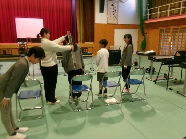 3月5日6校時、6年生が初めて体育館で卒業式の練習を行いました。