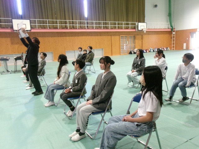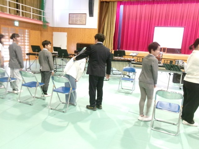 まずは卒業式に臨む心構えについて話を聞き、立ち方や礼の仕方などの基本的な作法、証書の受け取り方などの所作を一つ一つ確認しました。