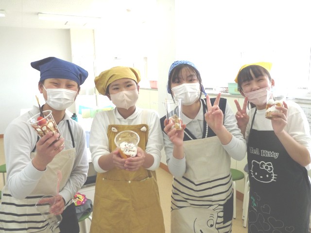 自分たちで作ったパフェの味は格別で、教室には「おいしい!」という声がたくさん広がっていました。