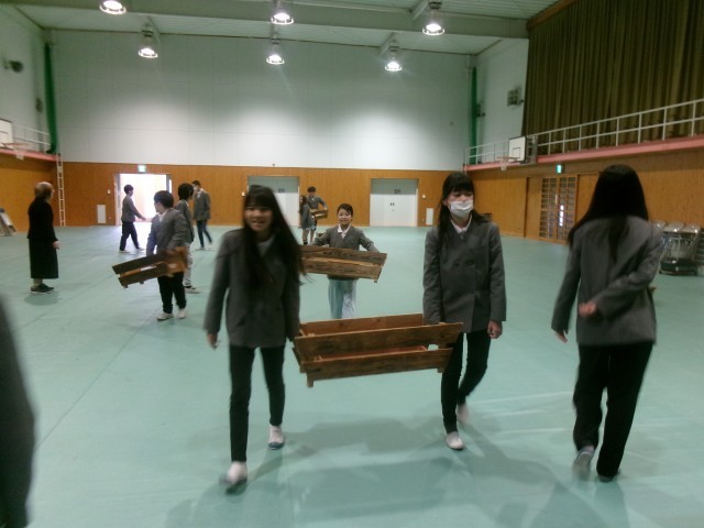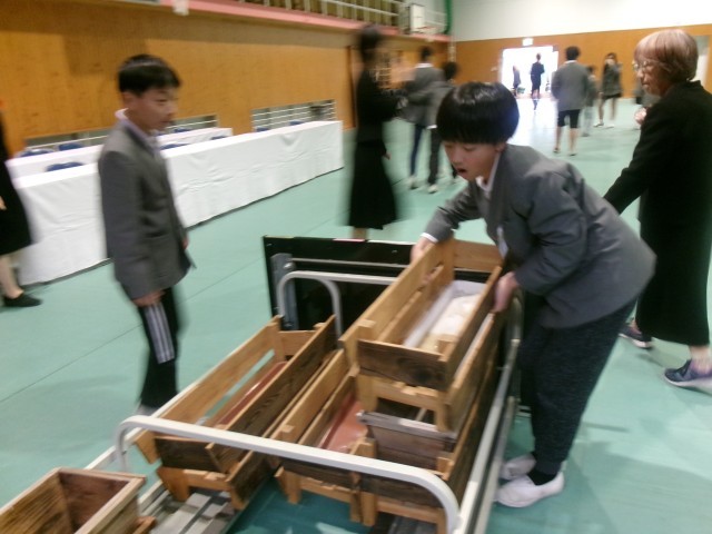 机やプランターいすの運搬、会場の整頓など、互いに声を掛け合いながら手際よく取り組む様子は、とても頼もしいものでした。