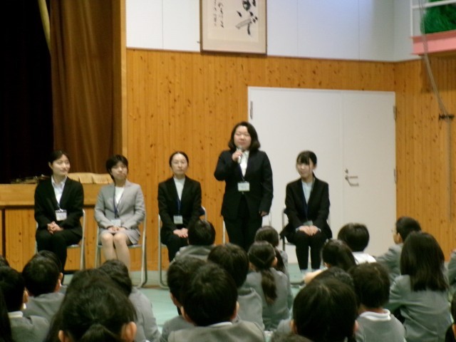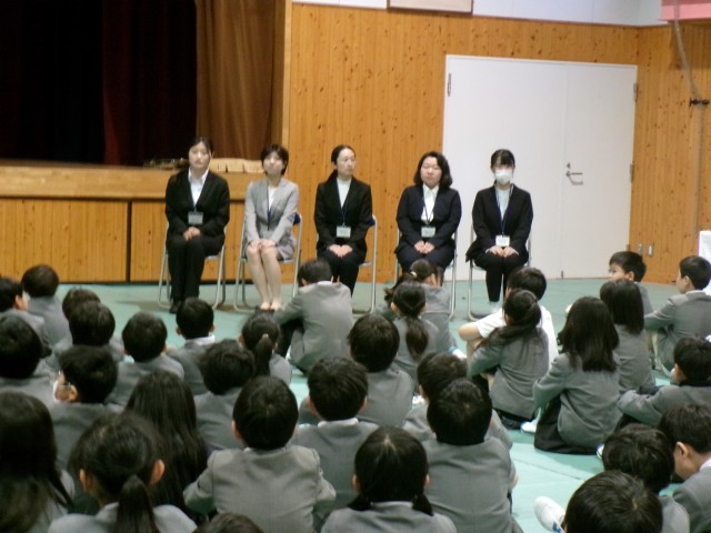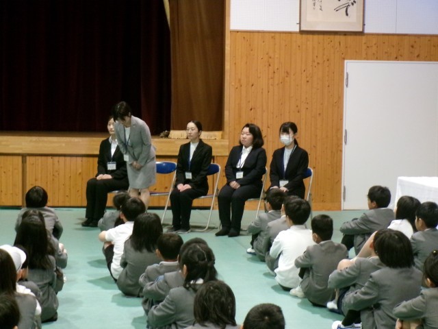 子どもたちはどんな先生かなとわくわくした様子で話を聞いていました。