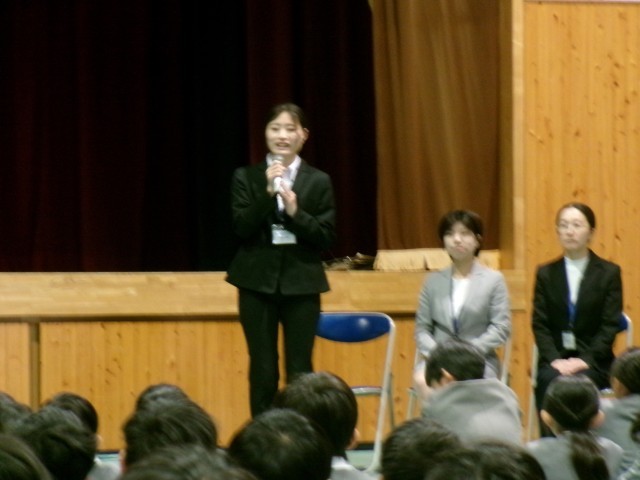 先生方からの「はじめましてよろしくね」というあいさつに体育館は温かい雰囲気に包まれました。