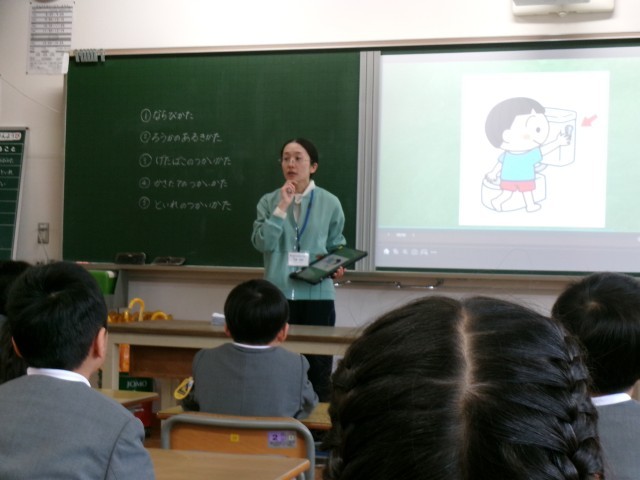 トイレの使い方やランドセルのしまい方、提出物の出し方など、小学校のルールを一つずつ学習しています。