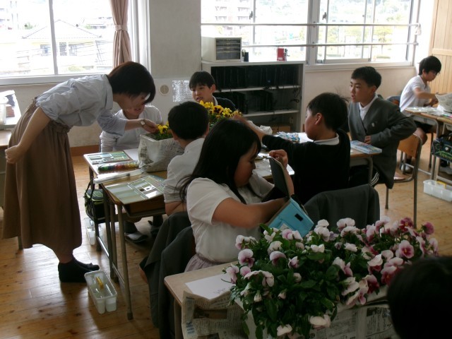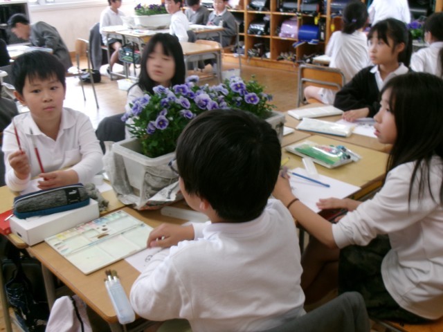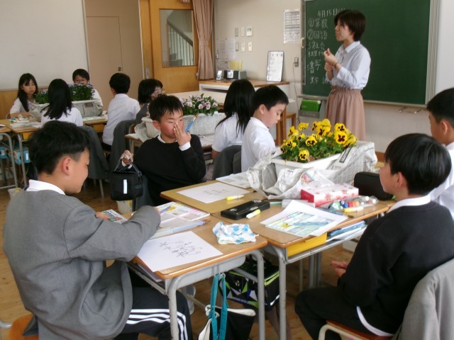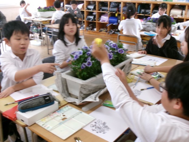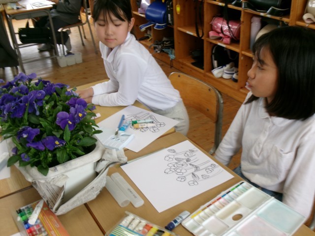 5年生の図工では、「パンジーの花をよく見て描こう」をテーマに学習しています。
