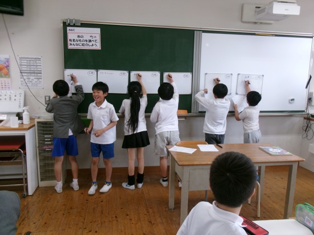 4年生は社会「岡山県の市町村について調べよう」の学習に取り組みました。