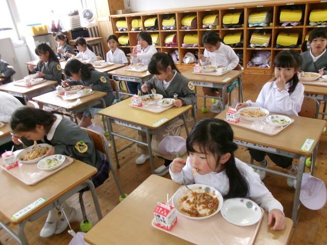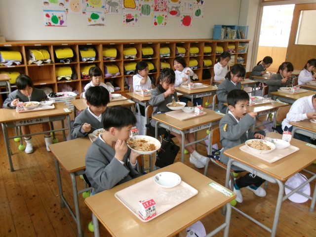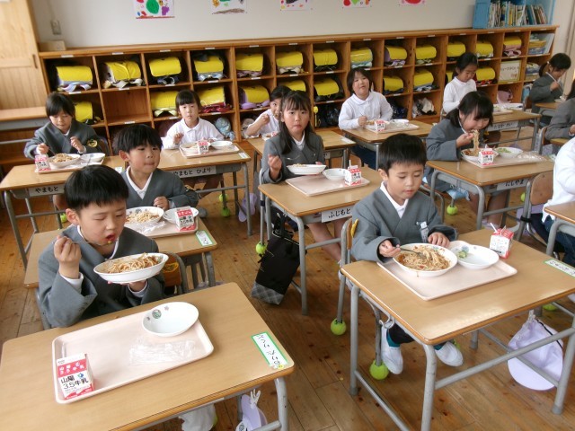 教室には「おいしい。」という声や笑顔が広がり、どの子も食欲もりもりでしっかり食べています。