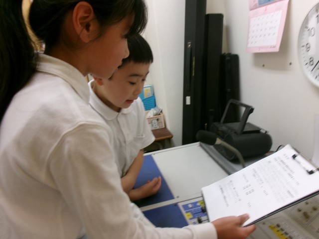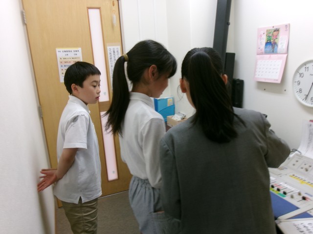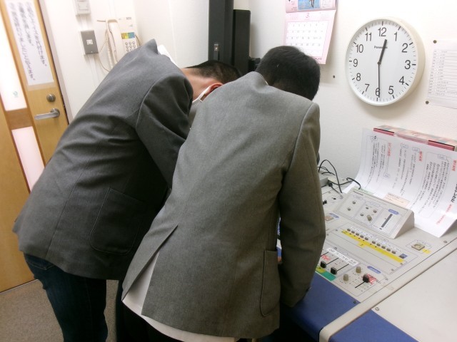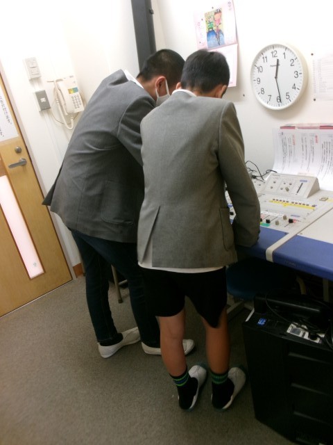 放送室では、6年生が優しく機器の使い方や放送の仕方、ルールなどを丁寧に教える姿が見られました。