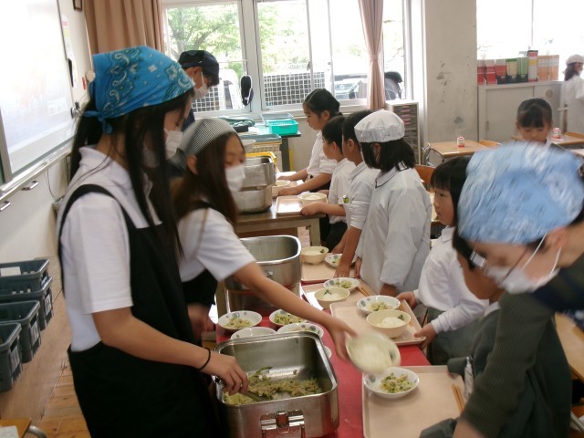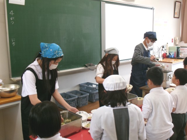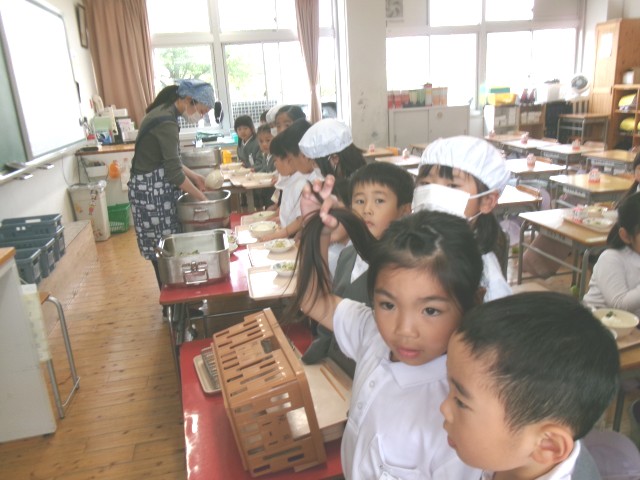 6年生に手伝ってもらう場面もありますが、1年生自身でできることもずいぶん増えてきました。