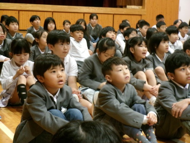 この日は、全校一斉に読み聞かせをしていただき、子どもたちは物語の世界に引き込まれるように、静かに耳を傾けていました。