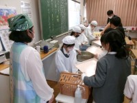 毎日、ほぼ同じ時間帯に各学年の給食準備の様子を巡回します。学年ごとに準備の進み具...
