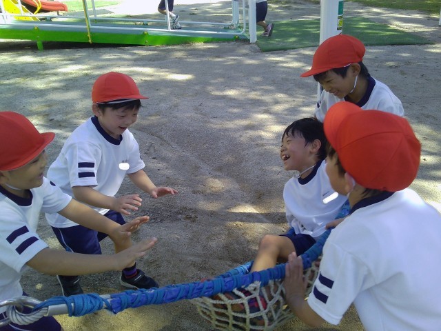 次に「奈義町総合運動公園」に行きました。どんぐりを拾った後、お弁当を食べました。お弁当を食べた後は、遊具で遊んだり、おにごっこをしたりしました。気温も上がり、暑いぐらいでしたが、元気いっぱい過ごすことができました。