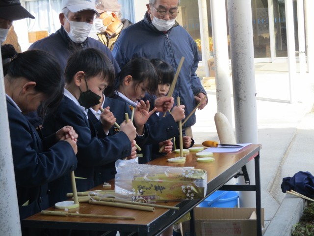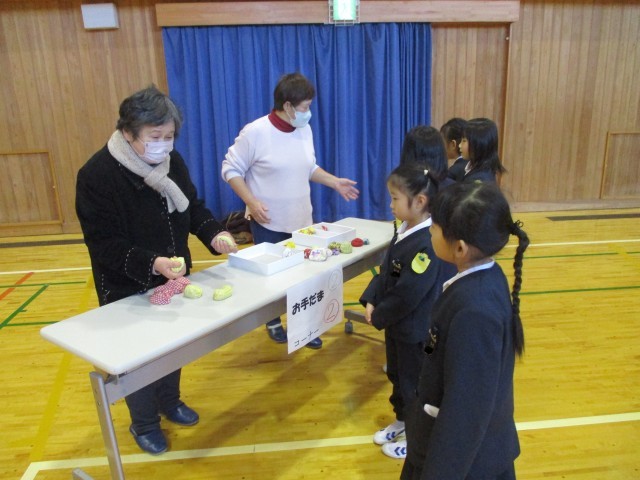 とても寒い日になりましたが、1年生は大喜びでいろいろな遊びにチャレンジしました。老人会の皆さんの技を見て、「すごい。」「上手じゃなあ。」と口々に言っていました。全部の遊びのコーナーをグループごとに回って体験しました。楽しく、優しく教えていただいて、大満足の1年生でした。老人会の皆さま、大変ありがとうございました。