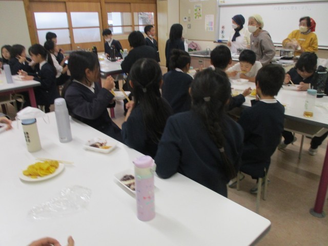 収穫を祝って、あんこ餅を作ってくださいました。4年生のみんなでおいしくいただきました。佐良山小学校で、小豆を植えて収穫する学習を始めたのは、35年ほど前からだということをお聞きして、みんなびっくりしました。歴史を感じて、ますますありがたくいただきました。小豆の一部は、来年の4年生が植えるために残しました。
