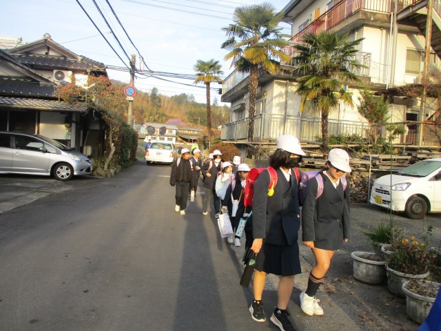 12月10日(水)の朝は、冷え込む中、登校班の友だちと安全に並んで登校する様子が見られました。ポケットに手を入れている人がいました。防寒着やマフラーや手袋などを上手に使って寒さを吹き飛ばしてほしいです。地域の少年警察協助員の方が来てくださいました。子どもたち一人一人に笑顔で「おはよう。」と声をかけてくださいました。