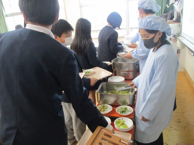 1月20日(火)は、佐良山小学校6年1組の考えた献立の給食でした。家庭科の授業で1食分の献立の立て方を勉強し、栄養バランスのよいメニューを考えました。献立名は、「ホヤホヤみんな大好きカツカレー」です。アピールポイントは、「いろどりよく、それぞれ違う味を考えました。カツカレーと福神あえは合うと思ったので決めました。」です。