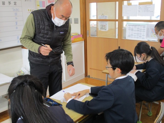 5年生では、6年生の全国学力学習状況調査に向けて、習熟を図るために頑張っています。1月28日(水)には、過去の全国学力学習状況調査の算数の基礎的な問題を解きました。計算問題では、計算の順序を正しく計算することや小数のわり算の小数点の位置を確認するなど、復習するポイントがありました。図形の問題では、角度の計算や面積の公式などで、間違えやすいところを確実にできるように復習しました。