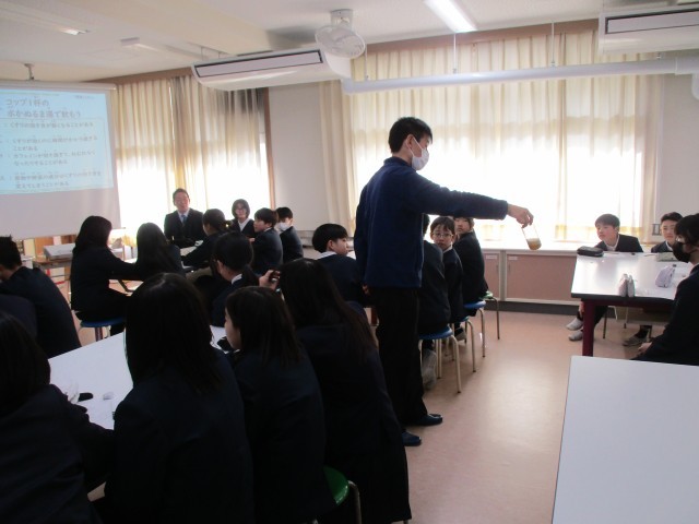普段よく飲む薬について、気を付けることや、時間や回数などの用法を守ることが大切だということを教えていただきました。薬が苦手だからといって、ジュースやお茶と一緒に飲むと、効き目がなくなることがあることを、実験を通してわかりやすく教えていただきました。