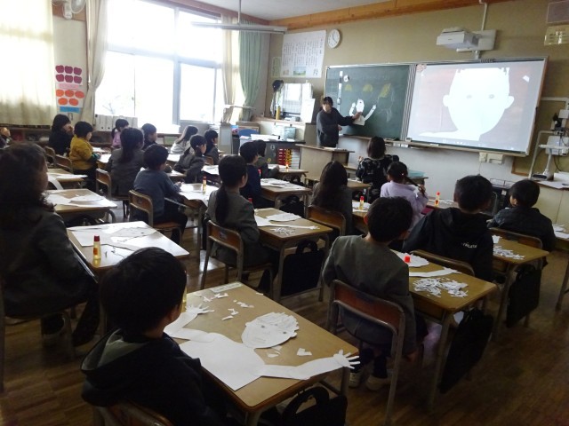 低学年の教室では、今、図画工作科の学習で「紙版画」に取り組んでいます。1年生、2年生それぞれが、自分だけの素敵な作品づくりに一生懸命です。1年生は、切った紙を貼り合わせ、版を作っています。ハサミの...