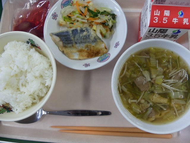 日本よいところ味めぐり献立は今月で第49弾にもなりました。ついに日本一周達成だそうです。最後の月は岡山県。今日のメニューはごはん、牛乳、鰆の西京焼き、浅漬け、つやま和牛入りそずり汁、津山産ピオーネゼリ...