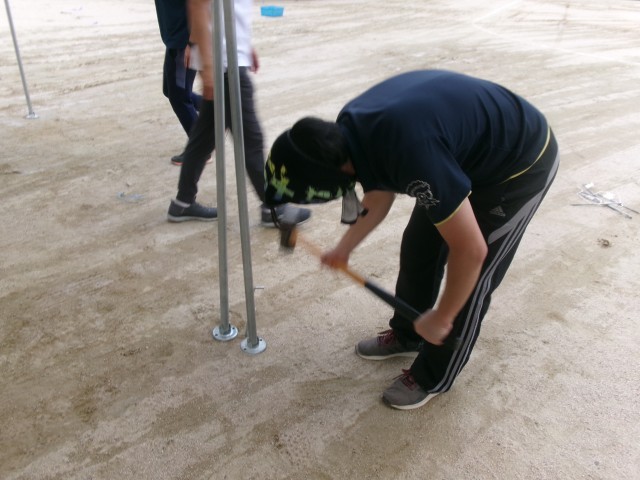 先生たちの熱気あふれる声が響き渡り、一本一本のポールが力強く地面に刺さっていきます。
