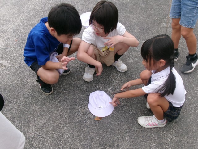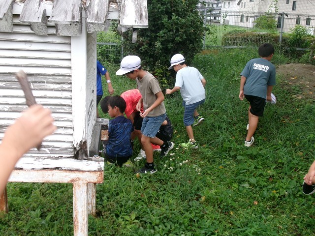 子どもたちは校庭へ繰り出し、草むらや石の下、木の根元など、様々な場所を一生懸命に探しました。