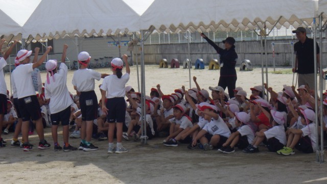 本番で最高の応援ができるように、チーム一丸となって頑張った子どもたち。一宮小のみんなの頑張ろうという気持ちの伝わってくる応援練習でした。