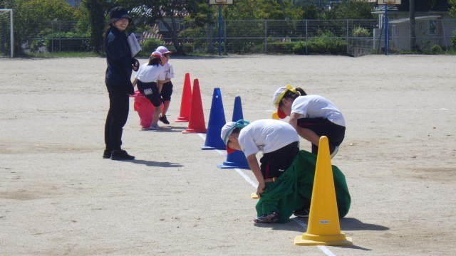 (一宮小)1年生、初めての運動会に向けて元気いっぱい練習中!
