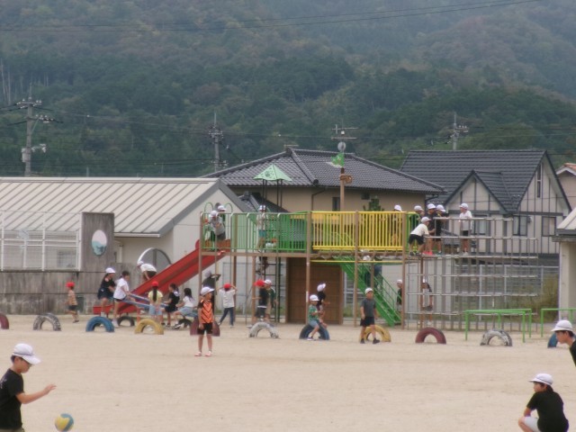 一生懸命にボールを追いかけ、ゴールに向かってキックする姿。チームで協力したり、勝負に熱くなったりと、運動を通して友達との絆を深めていました。また、友達と手を繋いで遊ぶ子たちや、大きな輪になって楽しそうな集団遊びをする姿も見られました。一緒に遊ぶ姿は、見ていて微笑ましいです。校庭の木々も少しずつ色づき始めており、遊びの中で秋の気配も感じられます。子どもたちの元気な姿は、学校の活気の源です。これからも安全に気をつけながら、たくさんの遊びを通して、心も体も大きく成長していってほしいと願っています。