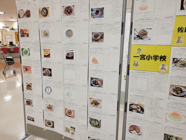夏休みに子どもたちが家族と一緒に食について考え、「伝えたい!わが家の行事食」や「おいしく食べよう野菜レシピ」をテーマに取り組んだ力作が一堂に会し、本校の5年生、6年生の作品も展示されました。