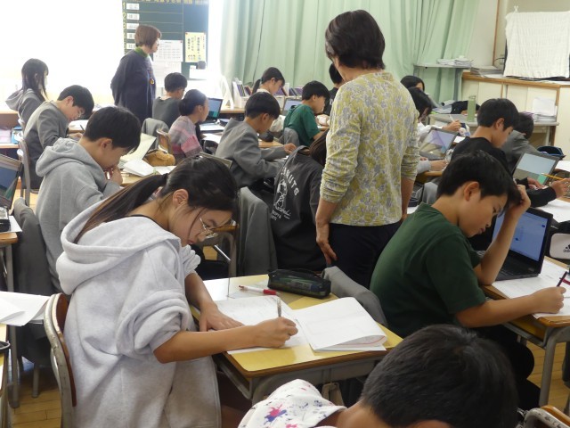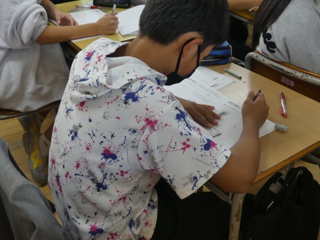 本校では、子どもたちが「主体的な学び」の力を一層高め、基礎的な学力を身につけることを目指し、「主体的な学びの基盤事業づくり事業」による補充学習を実施しています。今日も6年生の教室をのぞいてみると、集中して学習に取り組む子どもたちの姿がありました。この日の補充学習では、一人ひとりの理解度や進度に合わせて、体積のプリント学習が進められていました。黒板には「体積祭」の文字とともに、学習の手順が書いてありました。子どもたちは、この手順に沿って、自ら学習内容を選び、自分のペースで学びを進めていました。