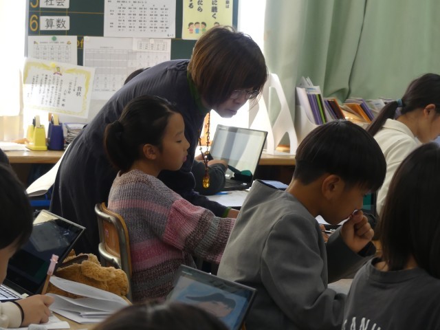学習中には、主体的な学びの基盤づくり事業支援員さんと担任の先生が巡回し、つまずいている児童に寄り添い、個別指導をしてくださる姿が見られました。支援員さんのアドバイスを真剣に聞いたり、質問をしたりしながら、一歩一歩、確実に理解を深めています。自分のペースで学習を進める中で、「わかった!」「できた!」という達成感を得ることは、子どもたちの学習意欲をさらに高めます。これからも、こうした補充学習を通して、6年生が小学校で身につけるべき学力を確かなものにし、中学校での学習へスムーズに接続できるよう支援してまいります。子どもたちの真剣な眼差しと、前向きに取り組む姿勢がとても素敵でした。