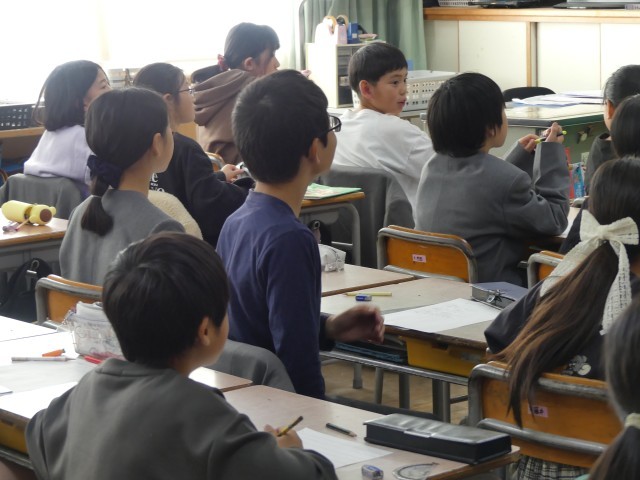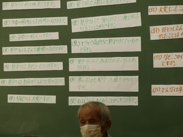 子どもたちはインタビューの回答を聞きながら、真剣にメモを取っていました。たくさんのメモでプリントがあっという間にいっぱいになりました。