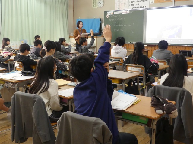 発表が終わると、「Do you have questions?(質問はありますか?)」という声かけに、たくさんの手が元気よく挙がりました!発表を聞いて疑問に思ったことや、もっと知りたいと思ったことを質問する姿が見られました。発表者も、質問に一生懸命答えようと頑張っていました。