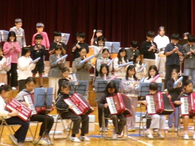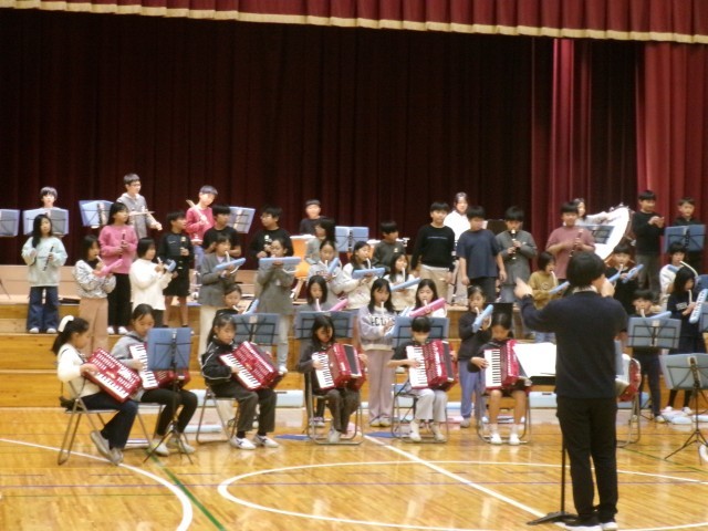 曲の出だしやテンポが変わる難しい部分では、指揮の先生に視線を集中させ、全員が音を合わせようと真剣に取り組んでいます。特に、曲の迫力を出すための強弱のつけ方(ダイナミクス)を意識した練習を重ねています。メロディーを奏でるリコーダー隊の澄んだ音色、リズムの土台を支えるアコーディオン隊の力強い和音、そして曲に深みを与える木琴・鉄琴隊の美しい響き 。一人ひとりが自分の楽器の役割をしっかりと理解し、まるで一つの大きなオーケストラのような演奏になることでしょう。
