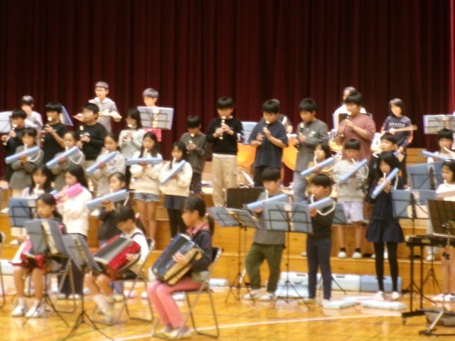 11月15日の学習発表会がだんだんと近づいてきました。今日は大舞台での発表に向けて、4年生が合奏の練習に取り組んでいました。今年の4年生が挑戦するのは、世界的な大ヒット映画『スター・ウォーズ』のテーマ曲です。誰もが知る壮大で勇ましいメロディーを、リコーダー、鍵盤ハーモニカ、アコーディオン、ピアノ、そして木琴・鉄琴などを駆使した大合奏で表現します。