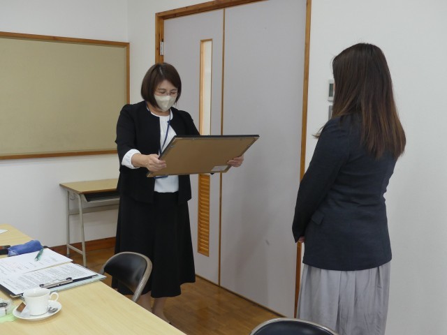 今回の受賞は、日々の地道な活動の積み重ねによるものです。学校や子どもたちを温かく見守り、支えてくださっている代表者の方々へ、津山市教育委員会教育長の代理として校長より賞状が手渡されました。