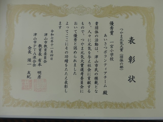 (一宮小)🏆 おめでとうございます!津山元気大賞 優秀賞受賞 🏅