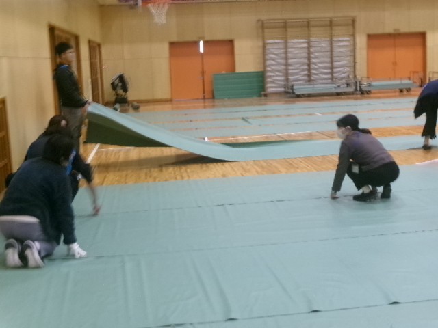 今回は体育館フロアにマットを敷き詰める作業を中心に行いました。重いマットを広げたり、端と端を合わせたりする作業は、まさにチームワークの見せ所です。職員同士で声を掛け合い、息を合わせて作業を進めました。今回の準備作業は、全てが「子どもたちが主役となる最高の学習発表会にしたい」という職員の熱い思いのもとで行われました。職員一同、裏方としてしっかりと環境を整え、子どもたちが安心して日頃の成果を発揮できる舞台を提供できるよう、最後まで準備に努めてまいります。当日、子どもたちの輝く姿を楽しみにお待ちください!