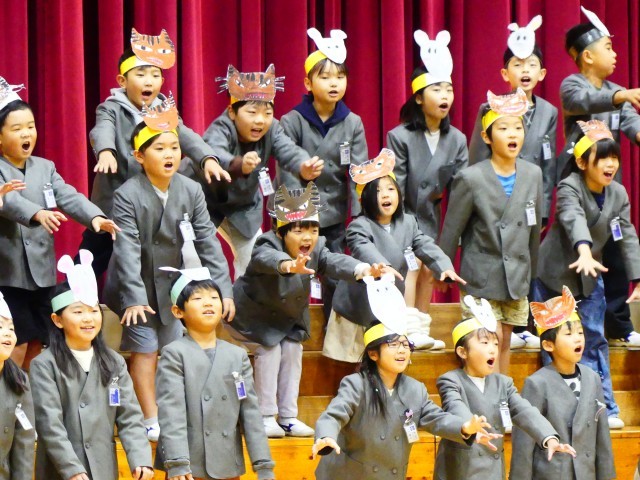 初めての学習発表会から1年が経ち、2年生になった子どもたちは、セリフや歌を覚えるだけでなく、登場人物の気持ちを考えながら練習を重ねました。仲間と協力して一つの物語を作り上げることで、表現する楽しさや力を合わせる大切さを学ぶことができたようです。素晴らしいチームワークで、見ている人たちを笑顔にする、楽しい発表会になりました!