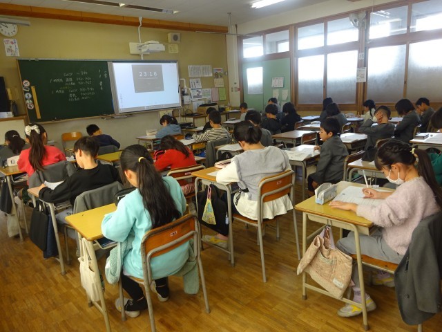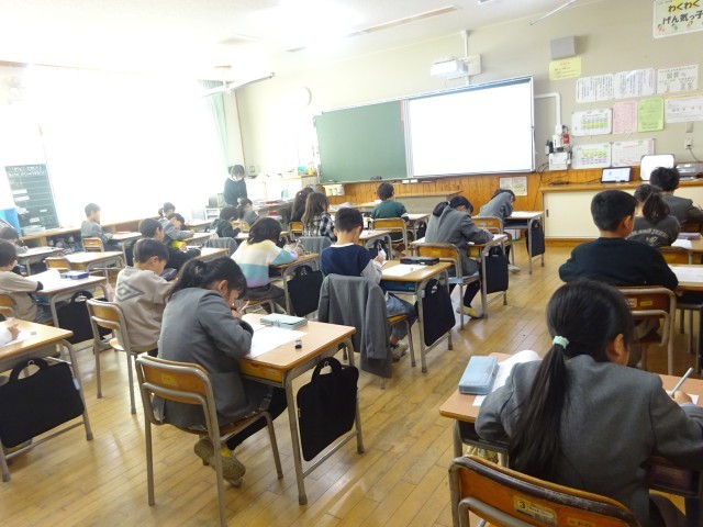 年生までの児童は真剣な表情で問題用紙に向き合い、鉛筆を走らせていました。どの児童も、問題文を丁寧に読み込み、これまでの学びを総動員して解答欄を埋めていく姿が見られました。