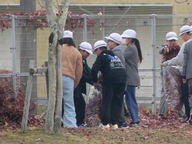 先週に引き続き、生活文化委員会の主催で落ち葉集めが行われました。本日は6年生らが、学校の環境美化のために一生懸命活動してくれました!校庭の隅や、フェンス沿いに秋の間に積もったたくさんの落ち葉を、みんなで協力して大きな袋に詰めていきまました。