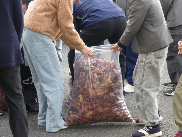 満杯になった袋を、力を合わせて運ぶ姿は頼もしい限りです。