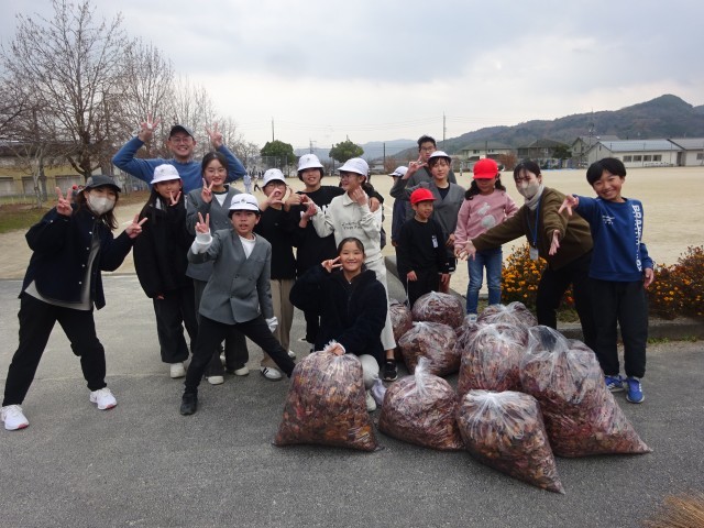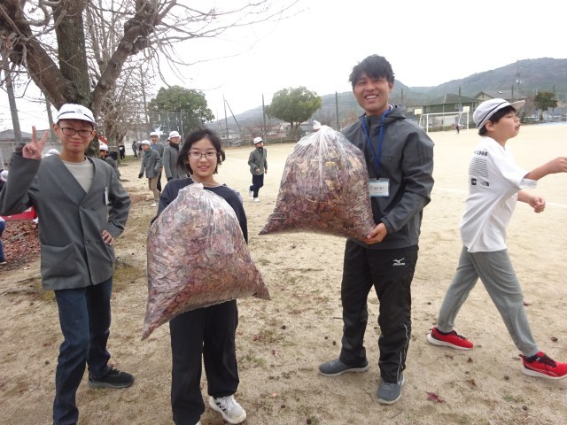 活動の結果、校庭はすっきりと美しくなり、集められた落ち葉はたくさんの大きな袋になりました!