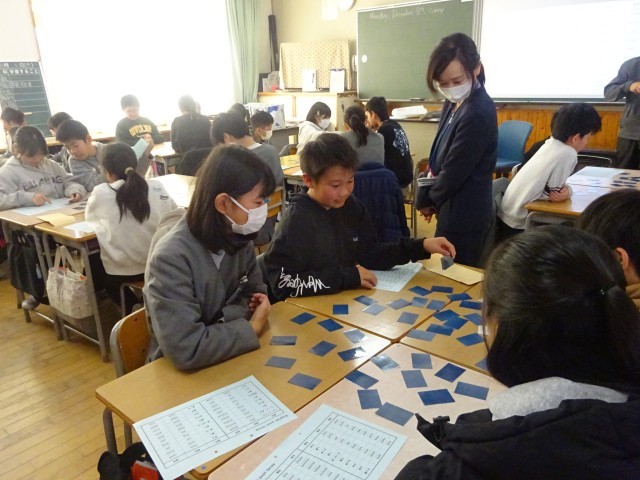 昨日、北陵中学校の神谷主幹教諭が一宮小に来てくださり、6年生の3クラスを対象に英語の出前授業を実施していただきました。中学校の先生から直接、英語を学ぶ貴重な機会となりました。先生の問いかけに対し、多くの子どもたちが積極的に手を挙げ、生き生きと英語で伝えようとする姿が見られました。授業中、子どもたちの楽しそうな笑顔が絶えず、中学校の先生との交流を通して、英語学習への興味関心をさらに高めることができました。授業の後半では、カードを使った単語づくりの活動では、「やったー」「もう少しだったのに。」と子どもたちの元気な声が廊下にも聞こえました。