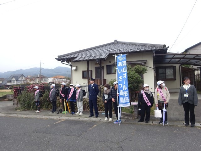 たすきをかけ、青い「あいさつ運動」ののぼり旗を掲げた委員会の児童たちが、登校してくる仲間たちを元気な声で迎えました。警察官の方も見守ってくださる中、冷え込みの厳しい朝でしたが、道行く児童たちと「おはようございます!」と声を掛け合う姿は、とても清々しく、心温まる光景でした。