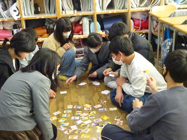 読み札には、「:横の餅 どらやきみたい もっちもち」「:津山城 春には桜 きれいだね」といった、思わず「あるある!」と頷いてしまうような郷土愛あふれる言葉が並びます。中には「」の札のように、一宮小学校を紹介するものもあり、自分たちの足元にある大切なものを再発見する素晴らしい機会となりました。完成したばかりのカルタを使って、さっそくクラスでかるた取りを楽しみました。