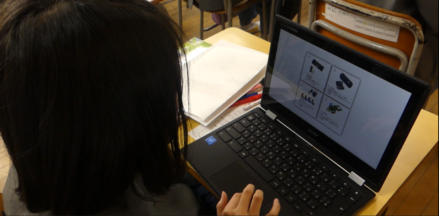 1人1台のタブレットで商品の細部を確認し、ワークシートに熱心にメモを取る姿は真剣そのもの。単に「好き・嫌い」で選ぶのではなく、「必要な情報を収集・整理する」という本時の目標に、どの子も主体的に取り組んでいました